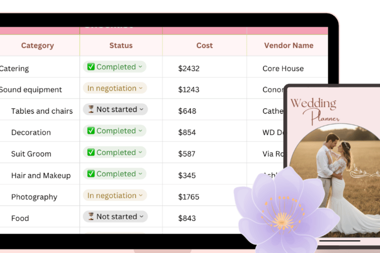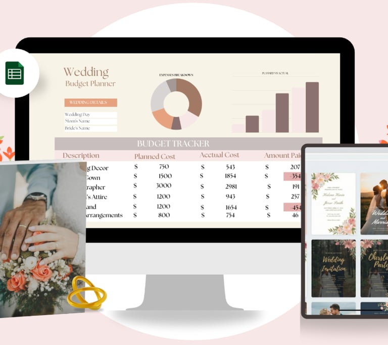 Plan your dream wedding without overspending. An automated, visual planner for Excel & Google Sheets