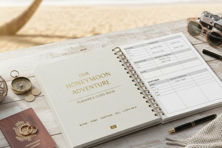 A complete honeymoon planner to help you organize every detail of your trip—from budget and itinerary to reservations and must-do experiences—so you can relax and enjoy a stress-free honeymoon.