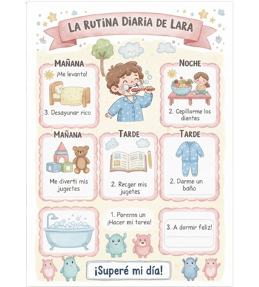 Tarjetas visuales que eliminan la confusión y el caos. El puente perfecto para que tu hijo aprenda a ser autónomo mientras tú recuperas la calma.